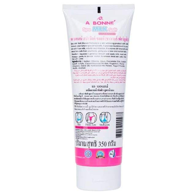 เอ บอนเน่ สปา มิลค์ ซอลท์ 2-in-1 350 กรัม สครับเกลือสปาสูตรนมสำหรับทำความสะอาดอย่างล้ำลึกและขัดผิวในขั้นตอนเดียว