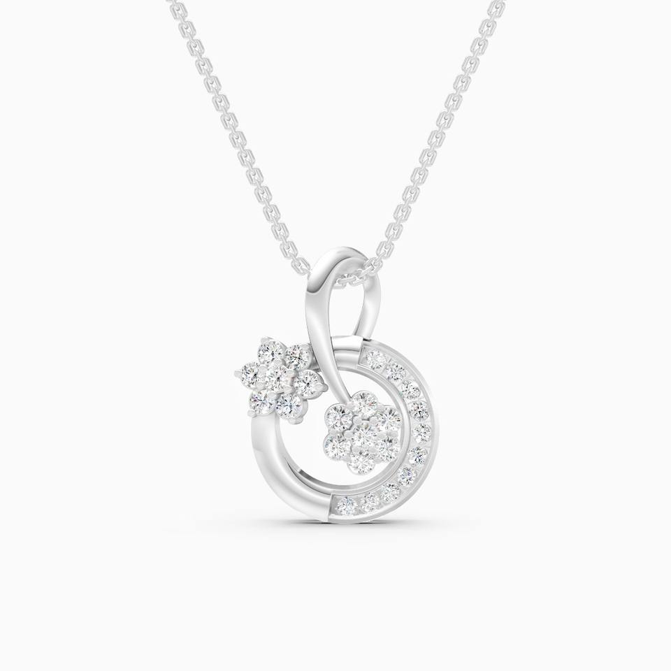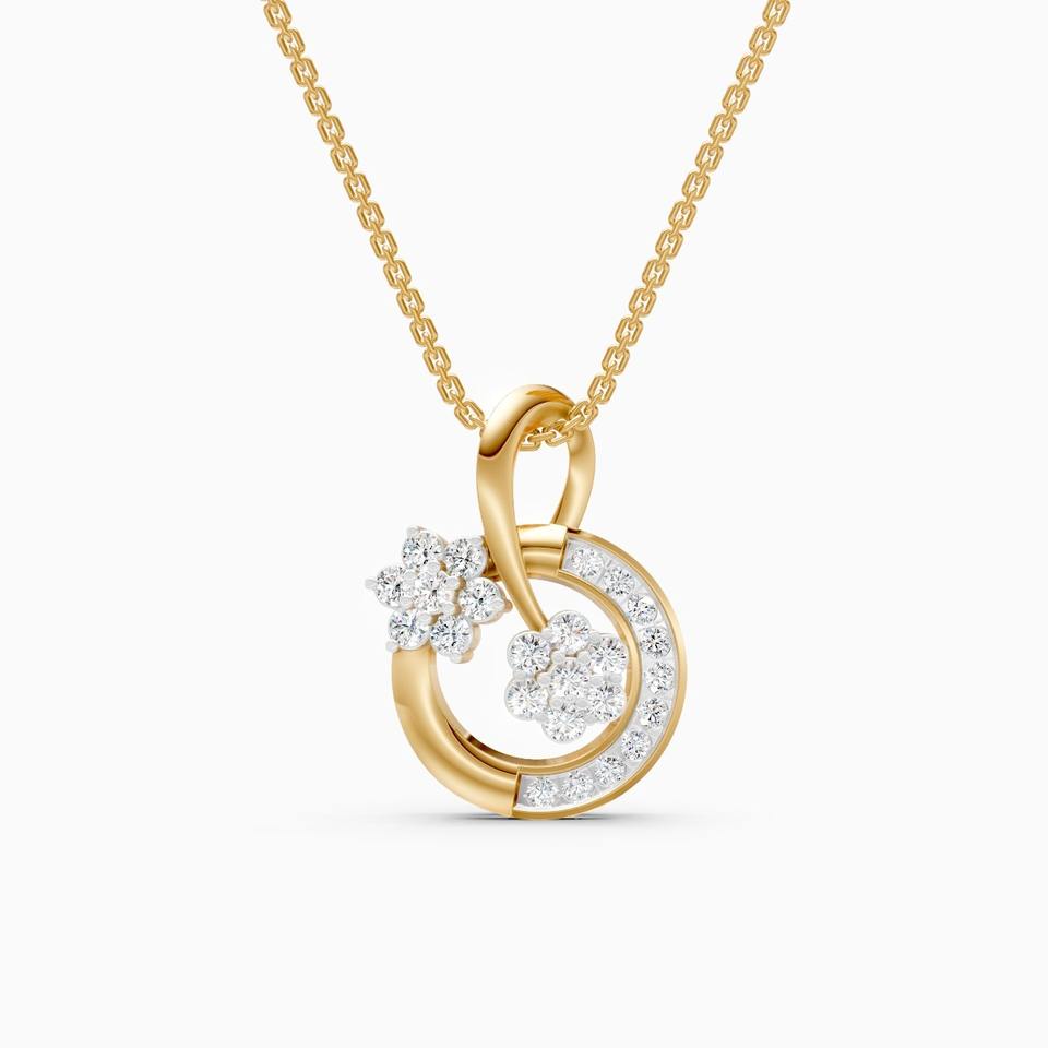 จี้เพชรทรงกลมลายดอกไม้ น้ำหนัก 0.35 กะรัต ผลิตในห้องปฏิบัติการ ตัวเรือนทองคำ 9K สีเหลือง ขาว และโรสโกลด์
