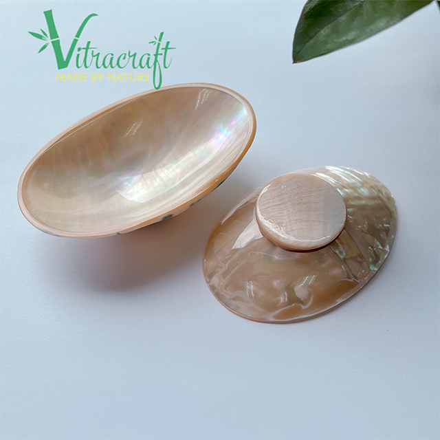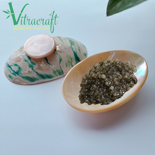 ของขวัญจากจานหอยสังข์ธรรมชาติที่ไม่เหมือนใครพร้อมฐานคาเวียร์จานทำด้วยมือราคาแพงเวียดนามปลอดภัยในการใช้ขนาด6-7ซม.