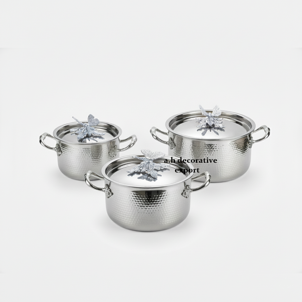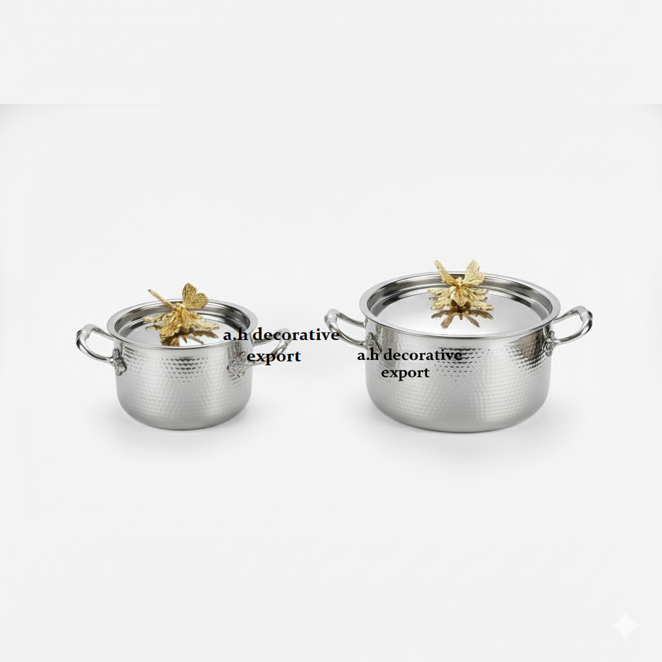 เอ.เอ. ชุดหม้อตกแต่งสไตล์ราชวงศ์ หม้อตุ๋นตีขึ้นรูปด้วยมือ ฝาปิดลายผีเสื้อสีทอง สำหรับงานเลี้ยง งานแต่งงาน ตกแต่งโต๊ะอาหาร หม้อต้ม