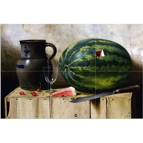 A. King Tile Mural Kitchen Wall Backsplash Watermelon Jug Knife Marble Ceramic Eye-catching Design for Home Decor