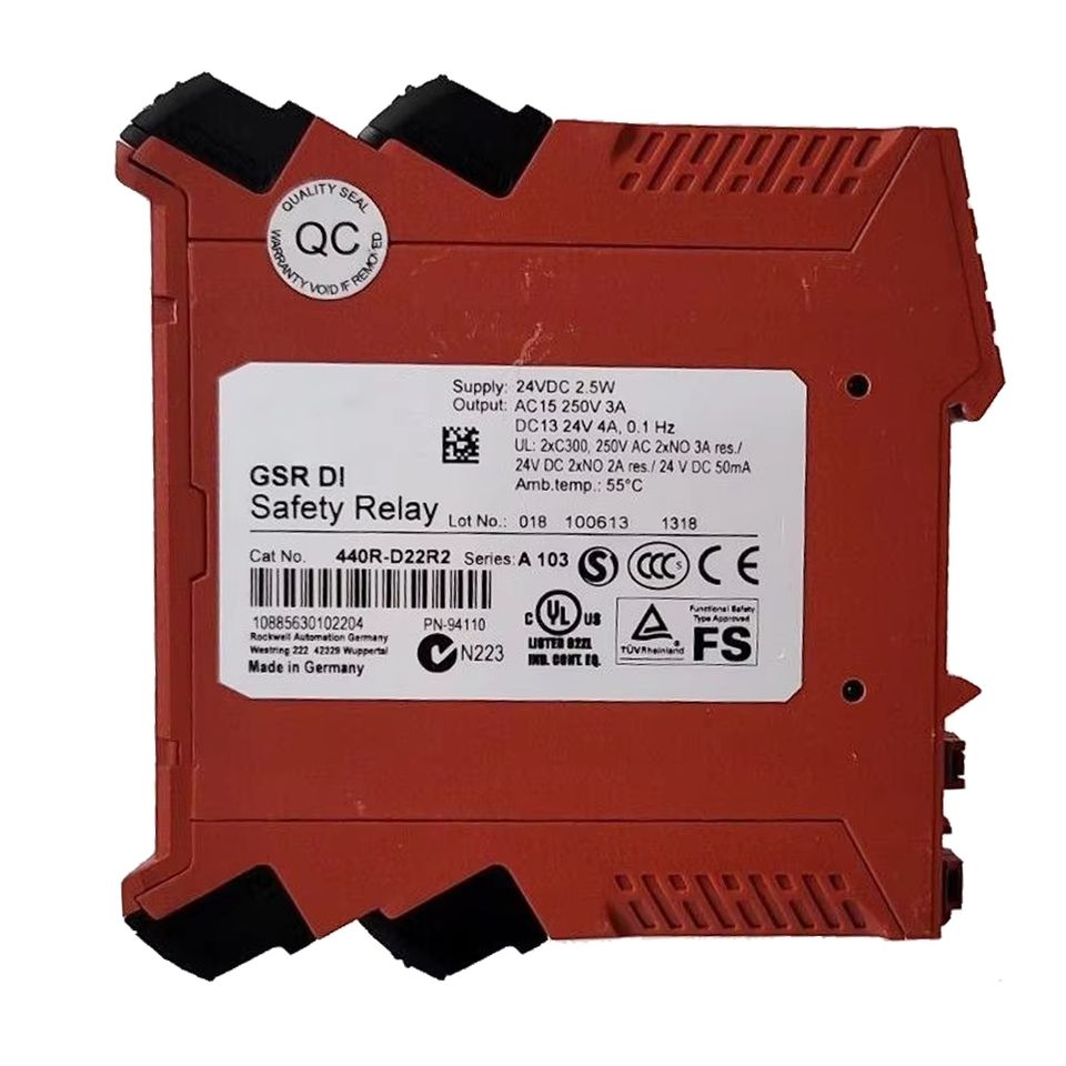 A-llen Bradley guardmaster 440R-D22R2โมดูลรีเลย์ความปลอดภัยอินพุตแบบคู่24VDC ตัวควบคุมเครื่องจักรอุตสาหกรรมการป้องกันแบบปิดผนึก