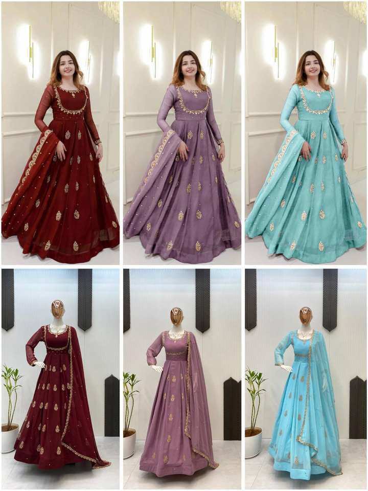 Georgette (Gown Outer and Dupatta), Micro (Gown Inner)