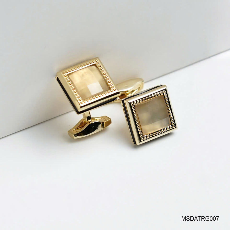 กระดุมข้อมือชุบทอง 18K คู่หนึ่ง ประดับด้วยอัญมณีหินอาเกตสีขาวทรงเหลี่ยม (MSDATRG007) จากคอลเลกชันทิ้งวู