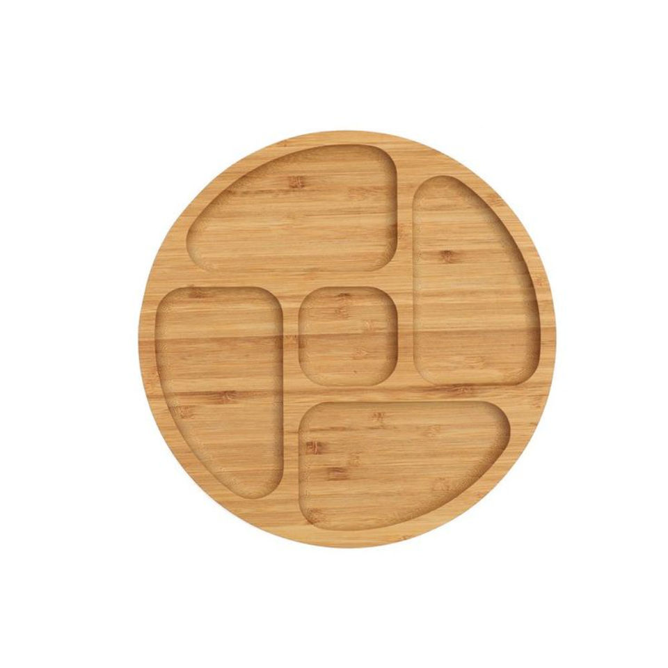 ถาดเสิร์ฟไม้ไผ่ทรงกลมถาดเสิร์ฟอาหารถาดใส่ขนมดีไซน์หรูหราอุปกรณ์ตกแต่งโต๊ะเครื่องครัว