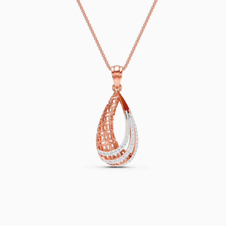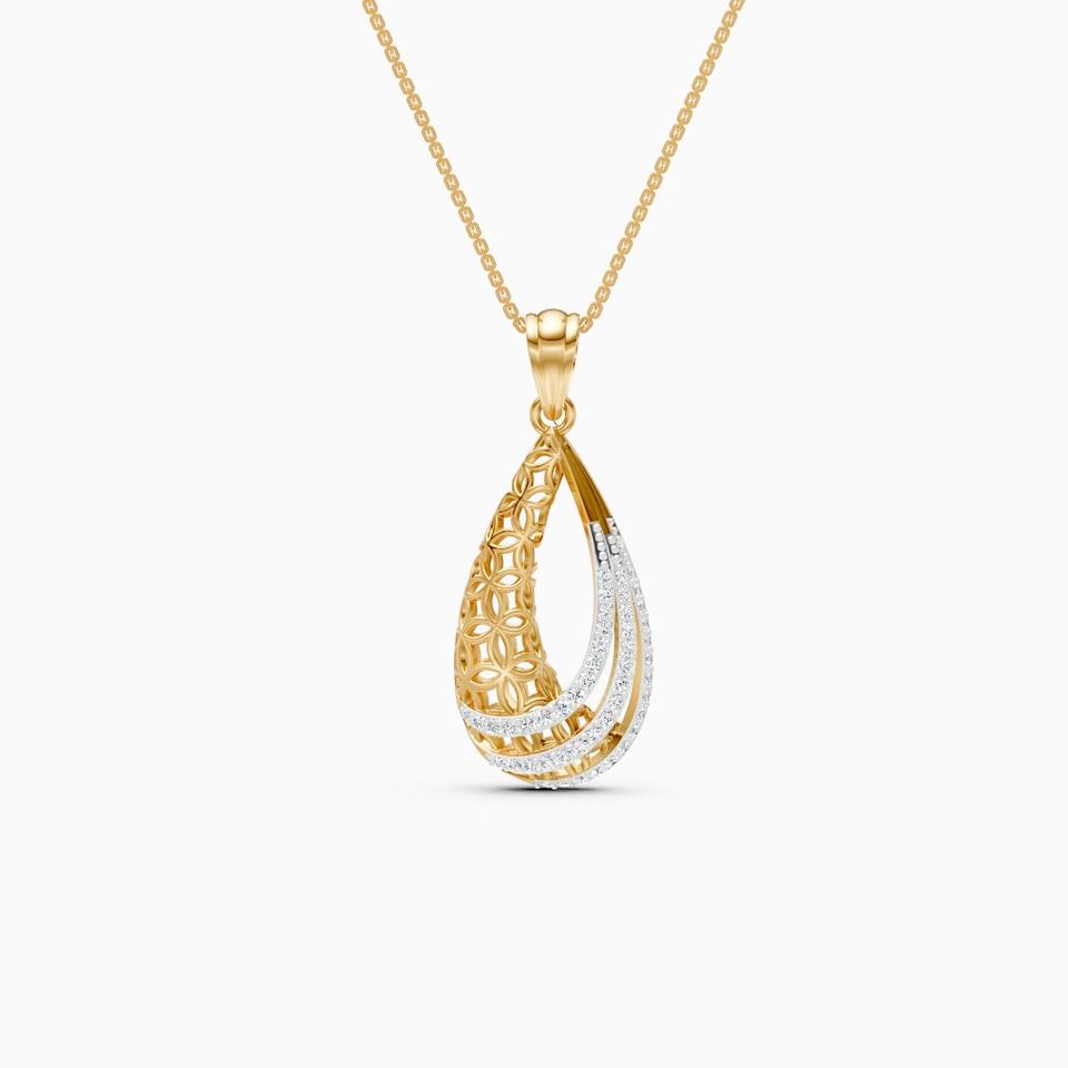 จี้เพชรทรงหยดน้ำ 0.365 กะรัต ที่สวยงามน่าทึ่ง ผลิตด้วยวิธี Lab Grown Diamond พร้อมการตกแต่งแบบสองชั้นในทองคำ 9K สีเหลือง ขาว และสีโรสโกลด์