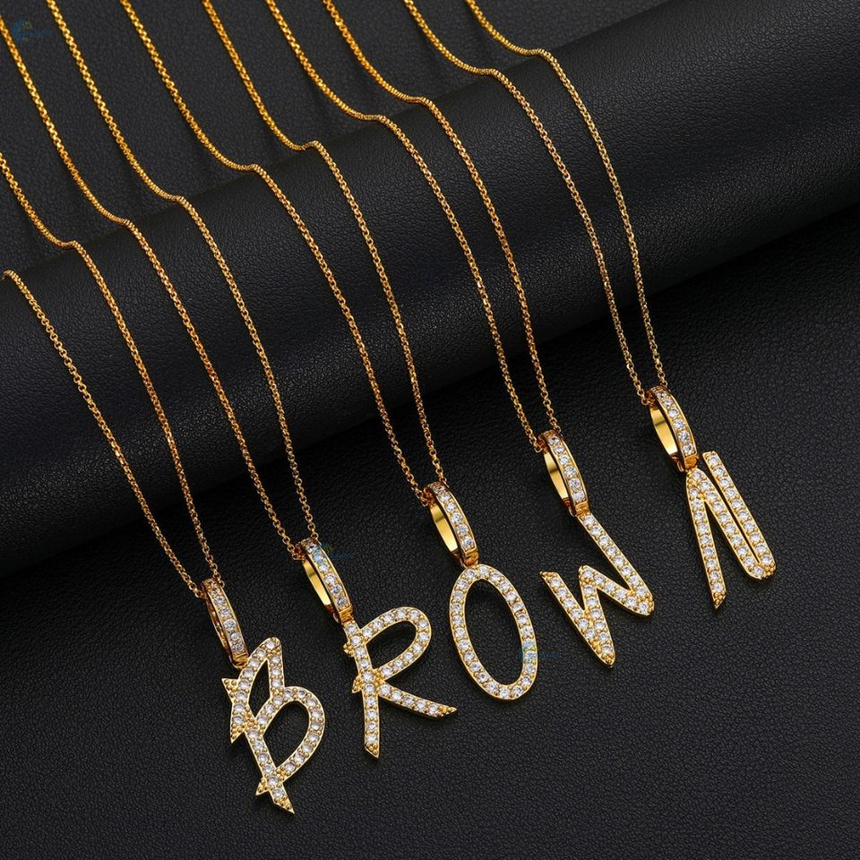สร้อยคอจี้ตัวอักษร A ถึง Z ประดับเพชร VVS1 ที่ได้รับการเพาะเลี้ยงในห้องปฏิบัติการ เครื่องประดับอักษรย่อแบบส่วนตัว ชุบทองคำเหลือง