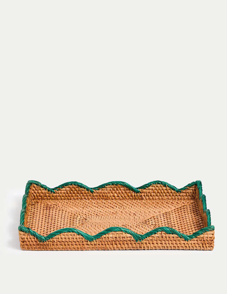 รูปลักษณ์ที่ได้แรงบันดาลใจจากประเทศแบบดั้งเดิมสร้างสัมผัสที่งดงามของความสง่างามตามธรรมชาติให้กับถาดหวายสานด้วยมือของคุณ