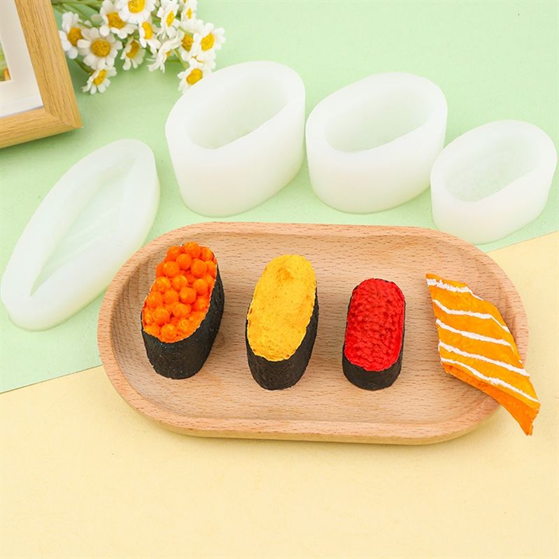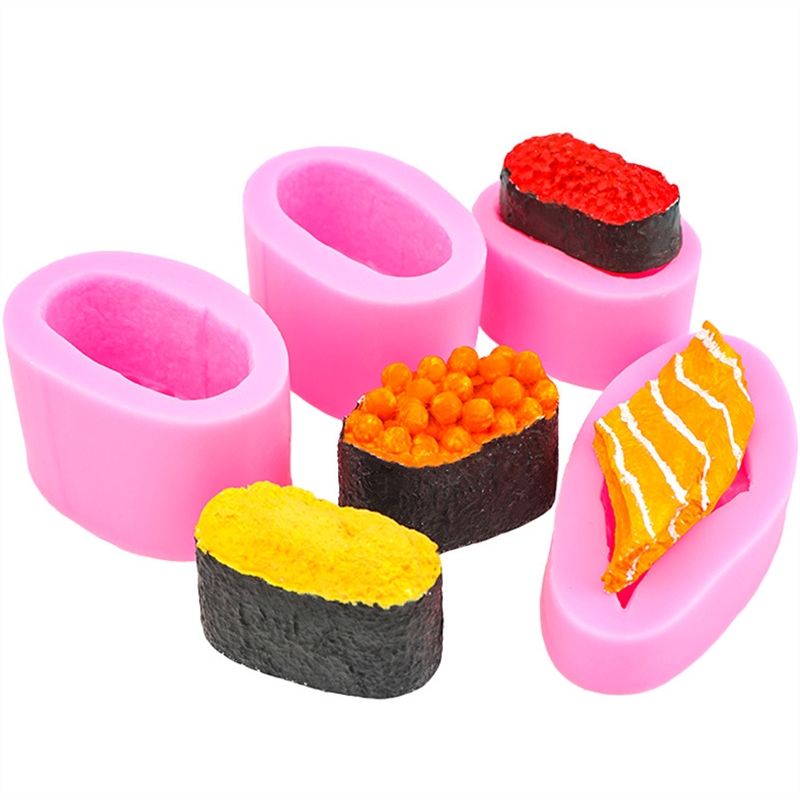 ความหลากหลายของเนื้อปลาซูชิไข่ทะเลเม่นทะเลปลาแซลมอนทำแม่พิมพ์ซิลิโคนและฟองดองด้วยมือสำหรับตกแต่งอาหารจำลองแบบ DIY