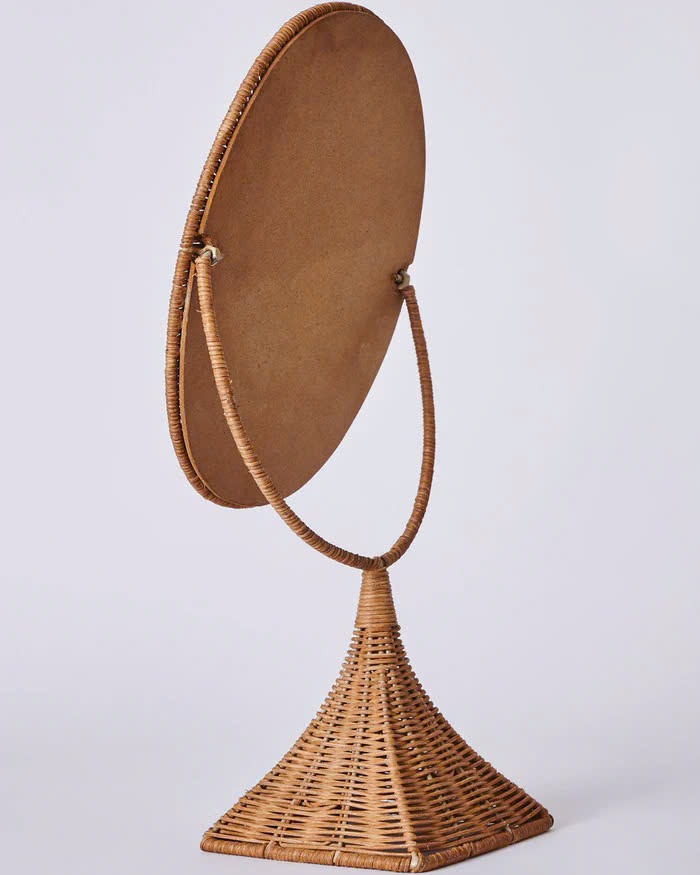 ชิ้นงานที่ได้รับแรงบันดาลใจจากวินเทจเป็นเอกลักษณ์และประณีตงานฝีมือหัตถกรรมและกระจกบนโต๊ะหวายธรรมชาติที่ปราณีตประณีต