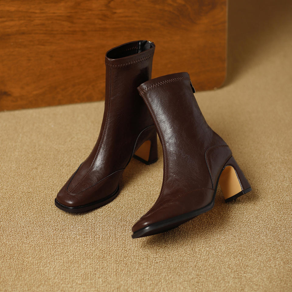 รองเท้าบูทหุ้มข้อสตรีแบบส้นหนา หัวเหลี่ยม ใส่สบายและใช้งานได้หลากหลาย พร้อมดีไซน์สไตล์เรโทร