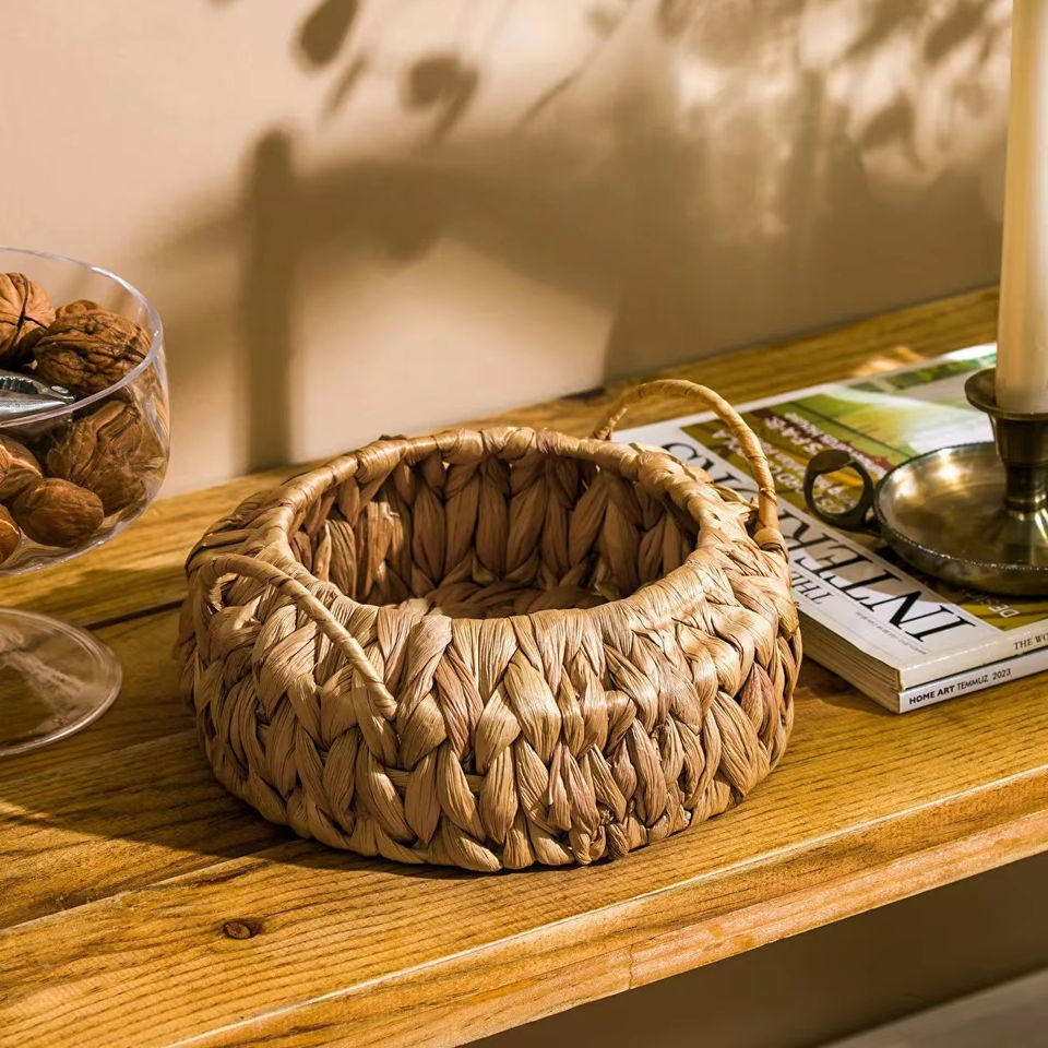 ตะกร้าผักตบชวาที่สวยงาม:ขนาด: D8 x สูง 4.7 นิ้ว