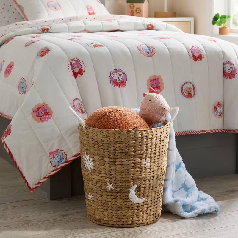 ตะกร้าผ้าลูกไม้ปักลายดอกผักตบชวาสุดน่ารัก