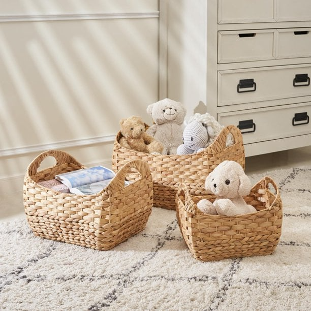 ตะกร้าเก็บของรูปวงรีสวยงามจากผักตบชวา ตะกร้าเก็บของทำมือ ขายส่ง เป็นมิตรกับสิ่งแวดล้อม ผลิตในเวียดนาม