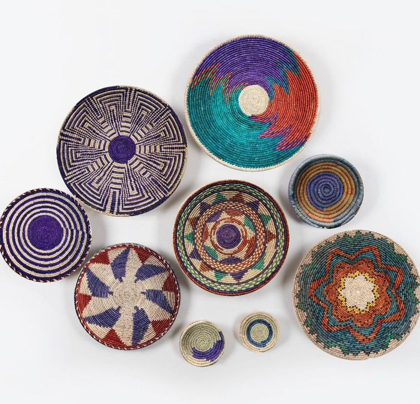 ชุดตะกร้าแผ่นติดผนังลายหญ้ามูนเจทอมือสามชิ้นที่มีสีสันมีจำหน่ายในราคาขายส่งสำหรับตกแต่งร้านของคุณ