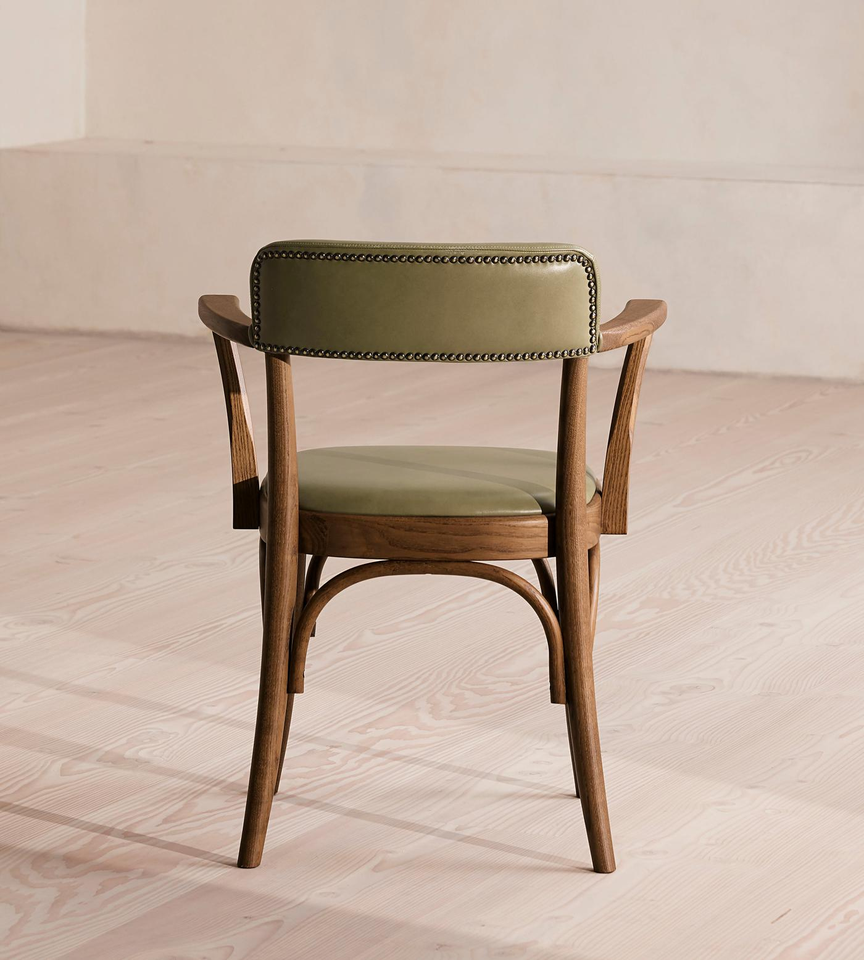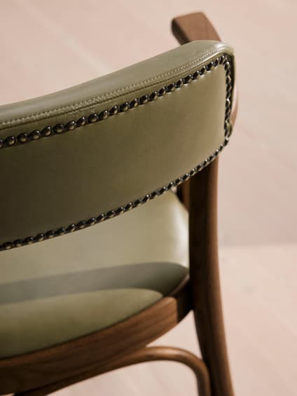 A solid ash frame is treated to an aged, mid-tone stain complemented by smooth Italian leather upholstery 1108235