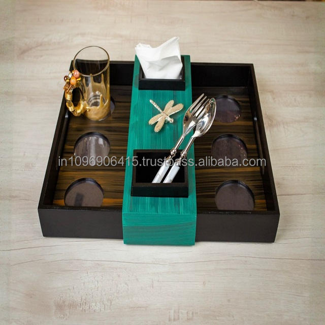 ที่วางแก้วไม้ทำมือสุดล้ำพร้อมที่ใส่ช้อนส้อมและที่ใส่กระดาษทิชชู่โดยเค เอส เอ็กซ์ปอร์ตส์