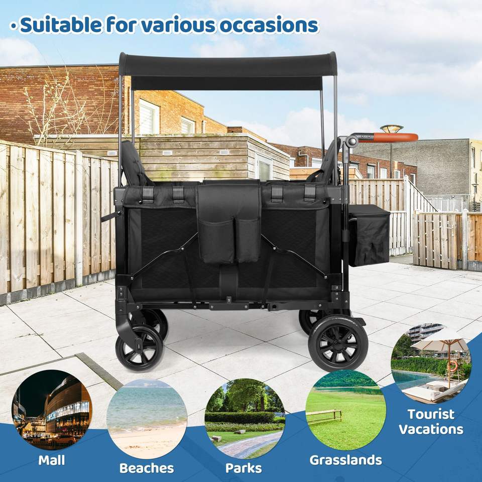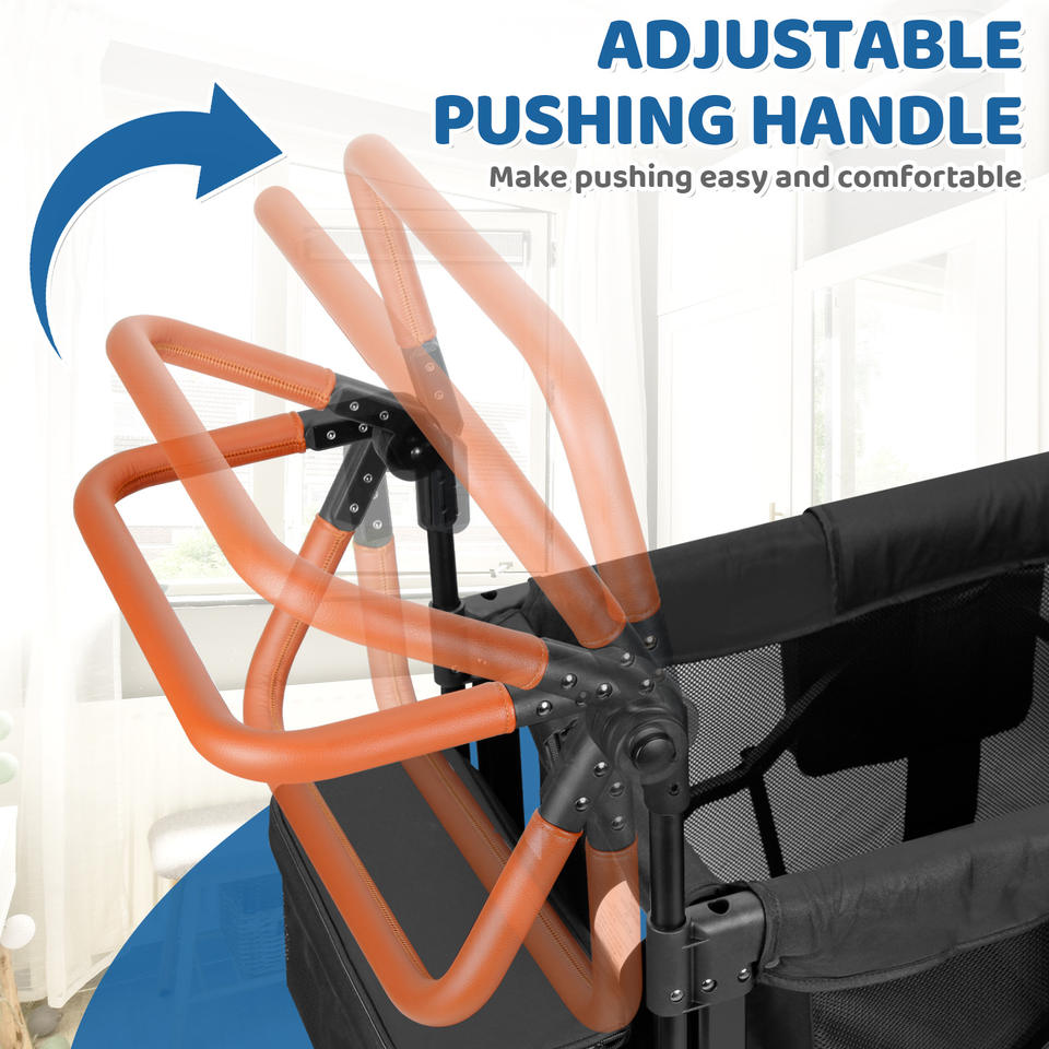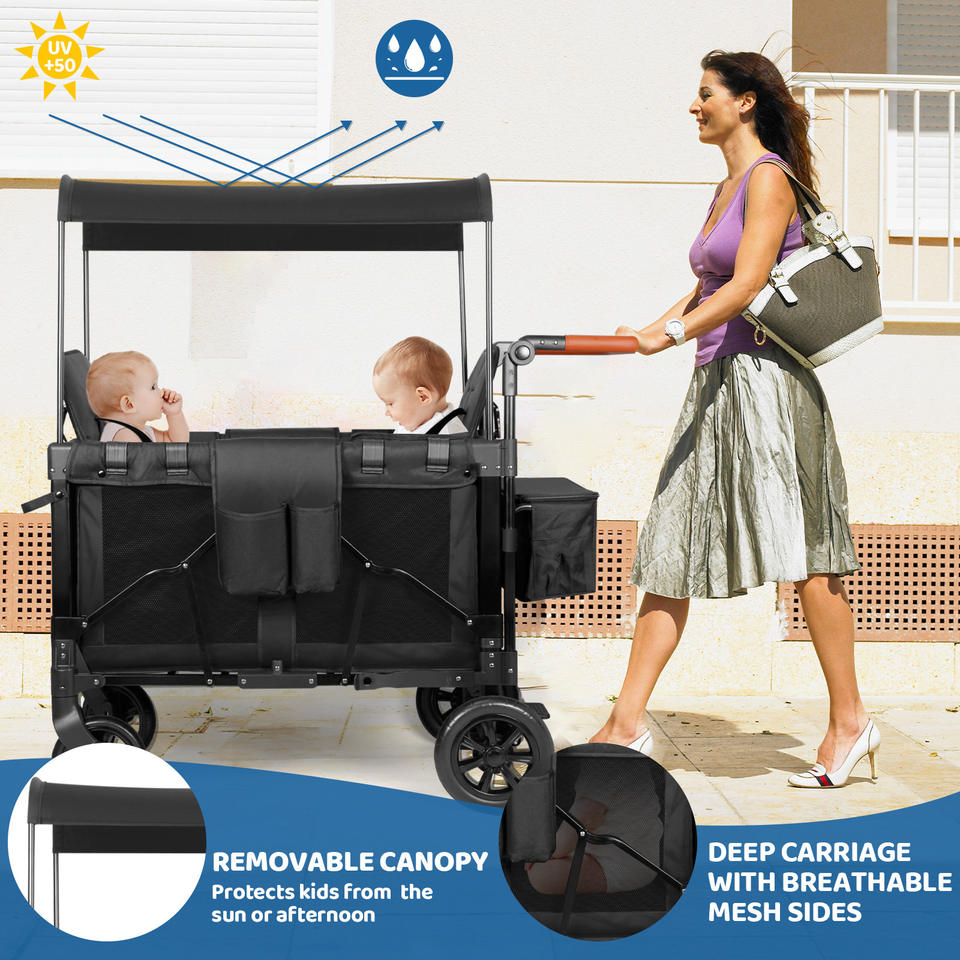รถเข็นเด็กแฝดสำหรับเด็กอายุ 0-6 เดือน ดีไซน์พับได้ มุมมองสูง โครงสร้างสแตนเลส ที่นั่งสองที่นั่ง สำหรับนั่งและนอน