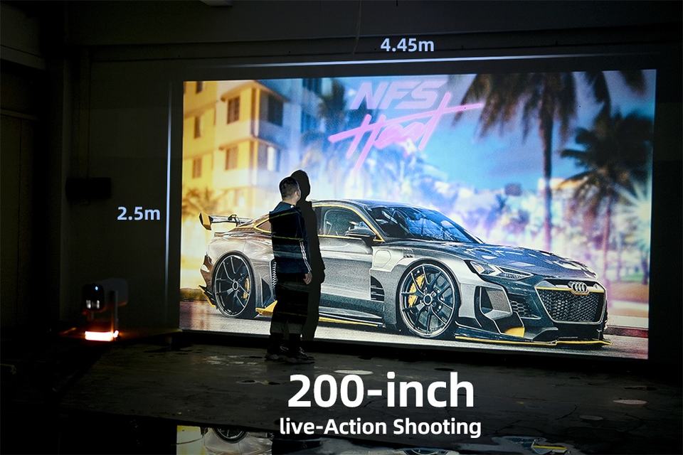 โปรเจคเตอร์เลเซอร์พกพา A005 Pro MINI 2 in 1 รองรับ 4K ลำโพง 20W แสงไฟ Ambient Light ยุโรป ความสว่างสูง เหมาะสำหรับเล่นเกม โฮมเธียเตอร์ สมาร์ททีวี