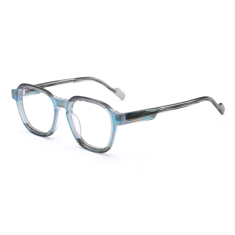 กรอบแว่นตาแฟชั่น A01128 น้ำหนักเบา แบบเต็มกรอบ ทำจากอะซิเตทเคลือบลายเรขาคณิต สีสันสดใสแบบเลเยอร์ สำหรับแว่นสายตา