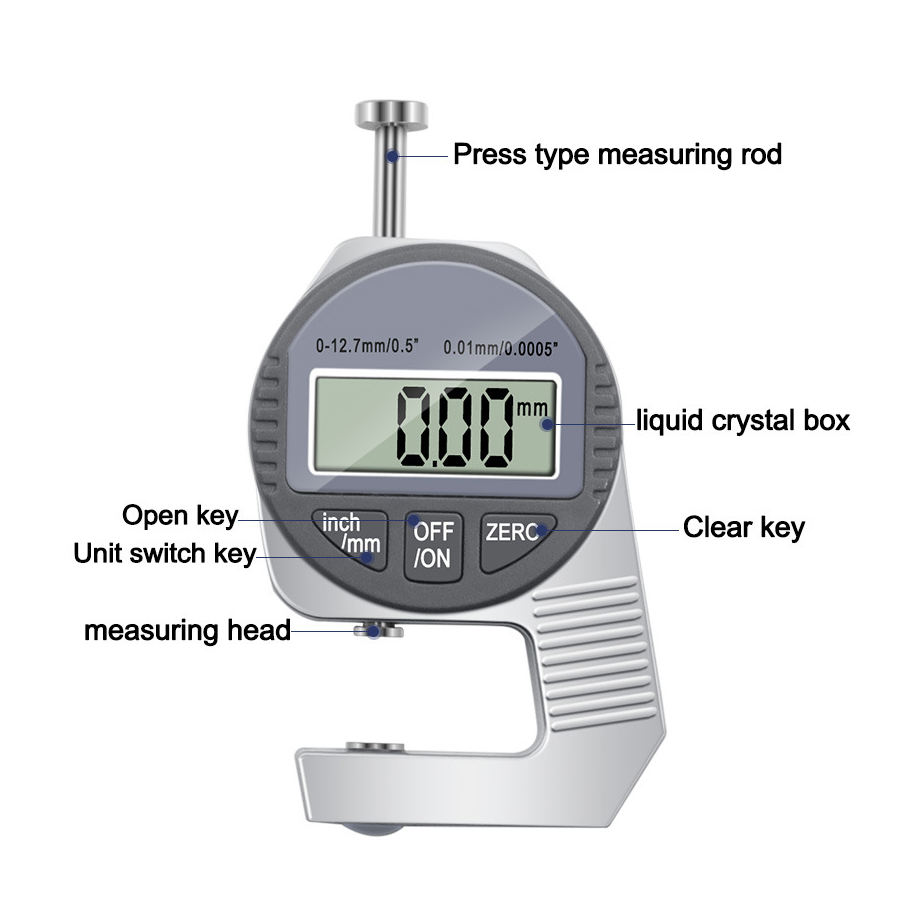 เครื่องวัดความหนาแบบดิจิตอล A0467 รุ่นหน้าปัดอิเล็กทรอนิกส์ ขนาดเล็ก ความละเอียด 0.01 มม. ขนาด 12.7 มม. เครื่องมือวัด เครื่องวัดหน้าปัด