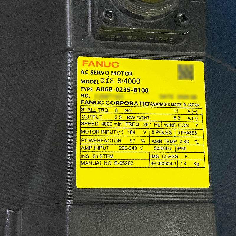 Product name:A06B-0235-B100 Fanuc AC Servo Motor Used With Tested
