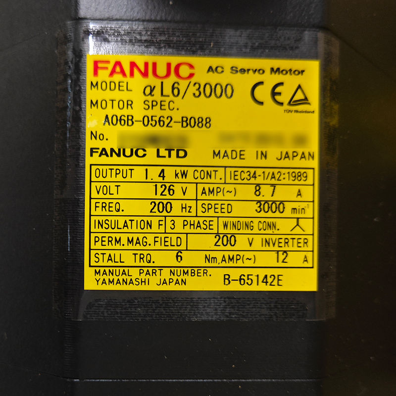 Product name:A06B-0562-B088 aL6/3000 Used Motor Fanuc
