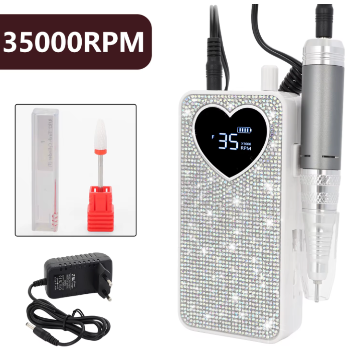 เครื่องเจียรเล็บ A11aga รุ่น BLINGED HEART ใช้พลังงานจาก USB/แบตเตอรี่ เสียงเบา พร้อมชุดดอกสว่านเหล็กและพลาสติก พร้อมแถบขัดแบบตั้งโต๊ะ