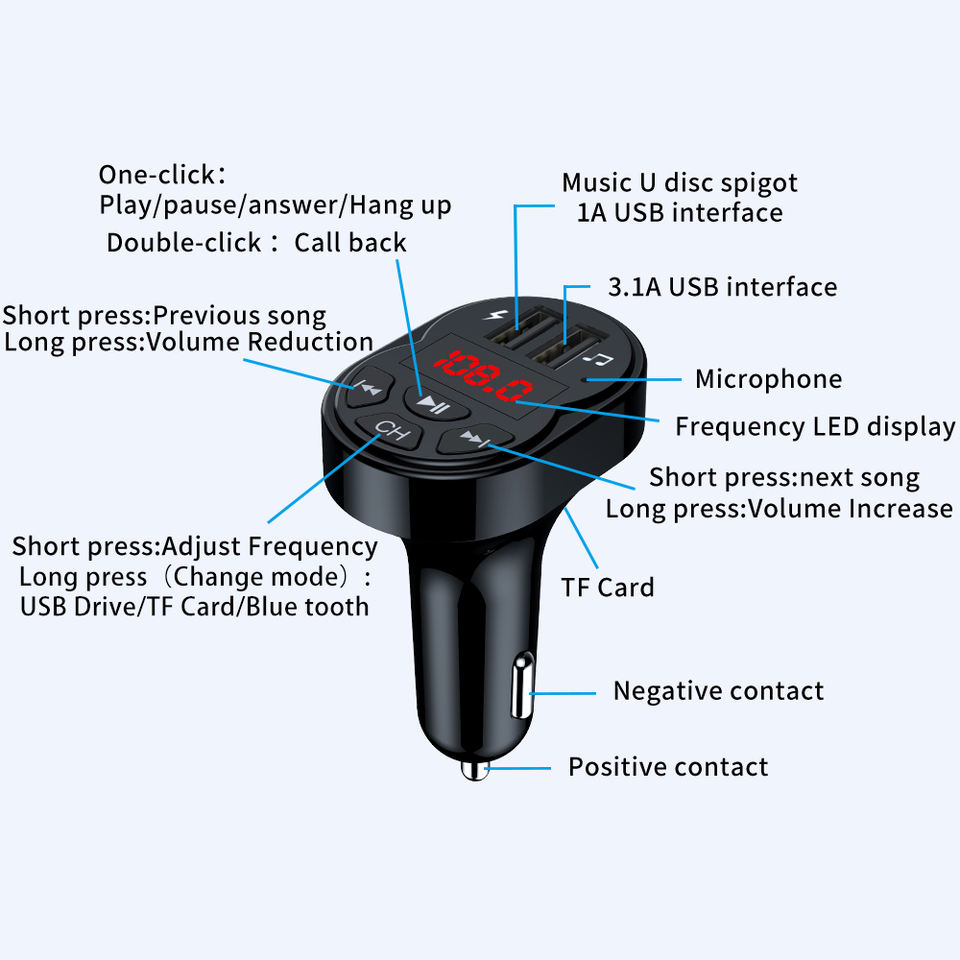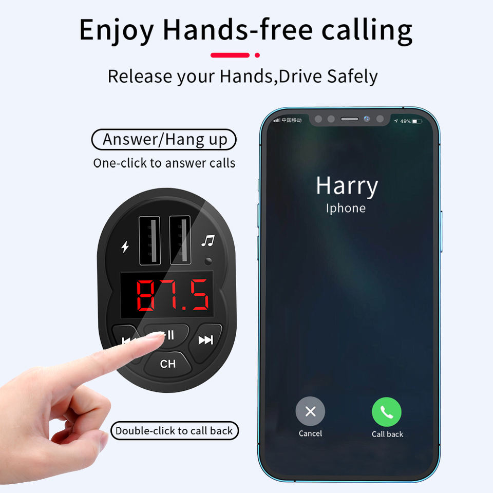 A2อุปกรณ์ส่งสัญญาณ FM ในรถยนต์, อุปกรณ์เชื่อมต่อตัวรับสัญญาณที่รองรับ BT เครื่องเล่น MP3 TF การ์ดเล่นดิสก์ USB ที่ชาร์จในรถยนต์อะแดปเตอร์แฮนด์ฟรี