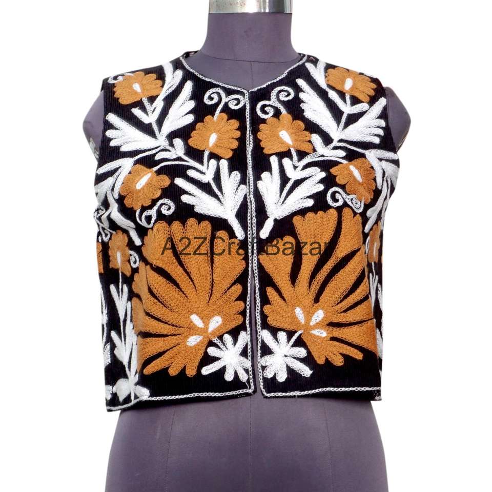 เสื้อแจ็คเก็ตผ้าฝ้ายพิมพ์ลายดอกไม้สำหรับผู้หญิง A2ZCraftBazar ดีไซน์วินเทจ เนื้อผ้าระบายอากาศดี มีโลโก้ด้านหลัง แขนครึ่งตัว คอทรงโอ เหมาะสำหรับฤดูใบไม้ผลิ