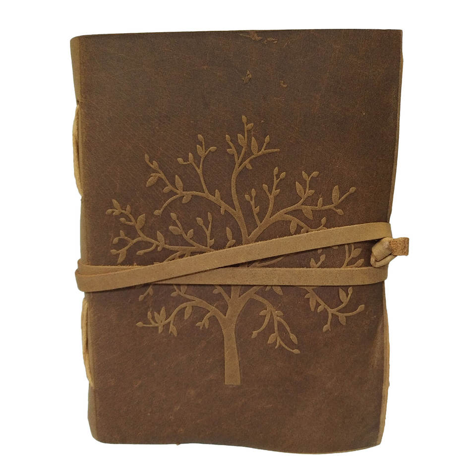 สมุดโน๊ตหนังสีน้ำตาล A3ทำมือลายนูนปกคลุมด้วยต้นไม้แห่งชีวิตพร้อมการเย็บลาย
