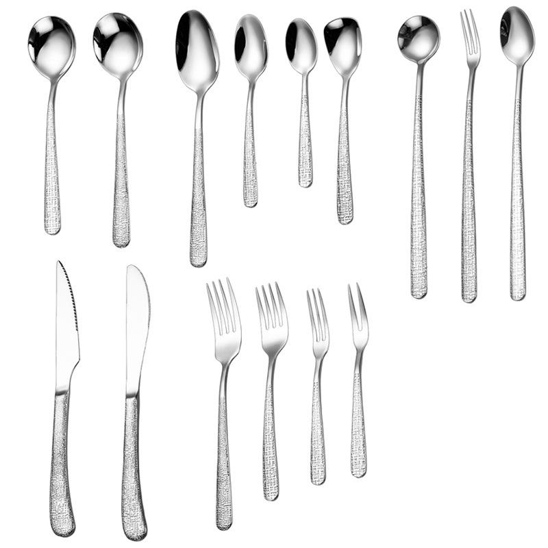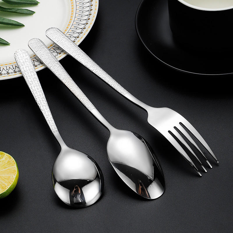 ชุดช้อนส้อมสแตนเลส A35 304 ลายตอก ทนทาน สำหรับใช้ในบ้านและโรงแรม
