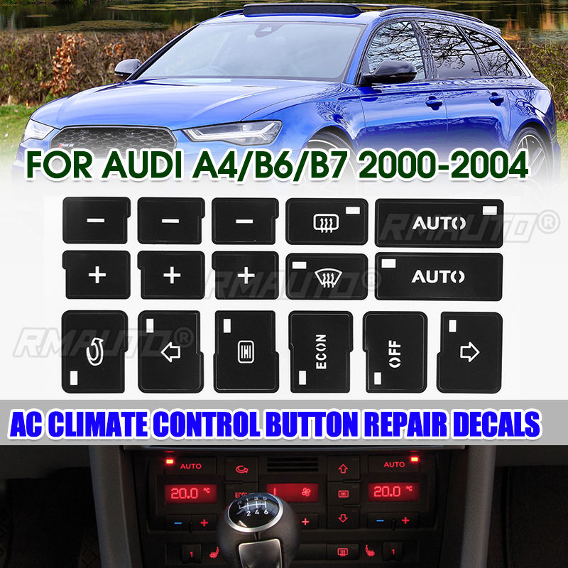 สติ๊กเกอร์ B7รถยนต์ A4 B6, สติ๊กเกอร์สำหรับซ่อมปุ่มควบคุมสภาพอากาศ AC สำหรับรถ Audi A4 B6 B7 2000 2001 2002 2003 2004