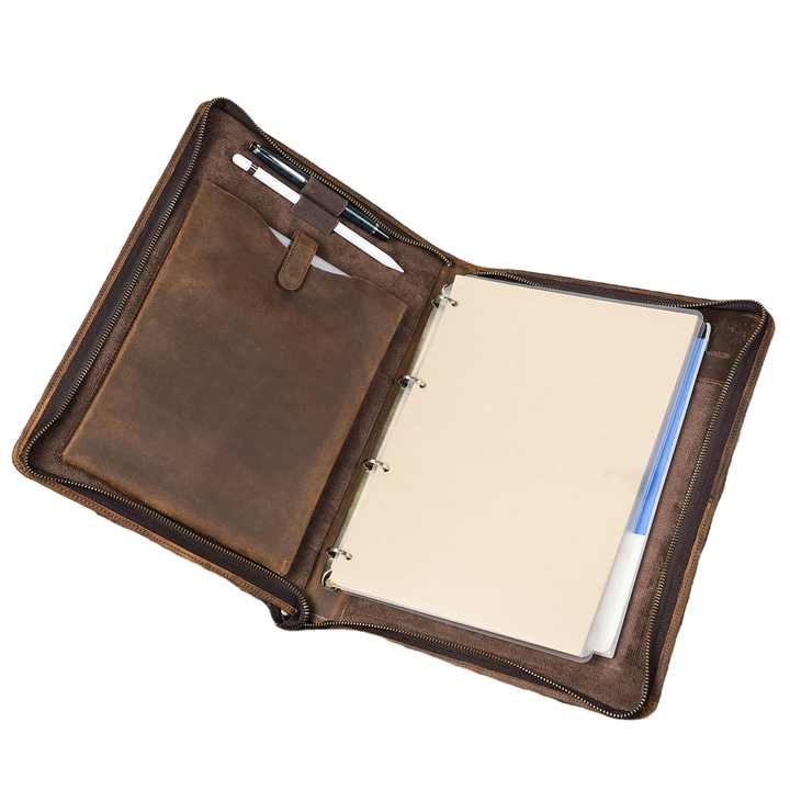 แฟ้มใส่เอกสารขนาด A4 แบบ 4 ห่วง 11 นิ้ว ปกหนัง พร้อมแผ่นรองเขียน ฟลิปชาร์ต สมุดสเก็ตช์ภาพ ช่องใส่ปากกา ปกแข็ง แบบเติมกระดาษได้