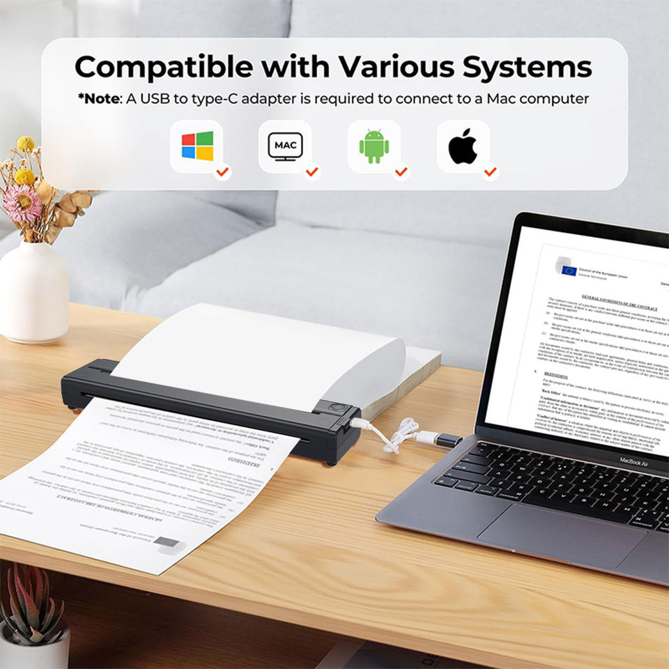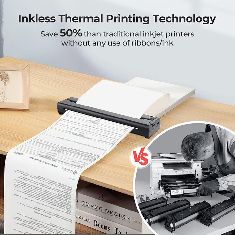 เครื่องพิมพ์กระดาษความร้อนแบบ A4สำหรับการเชื่อมต่อเอกสารเครื่องพิมพ์ไม่มีหมึกสำหรับสำนักงานบ้านกลางแจ้ง