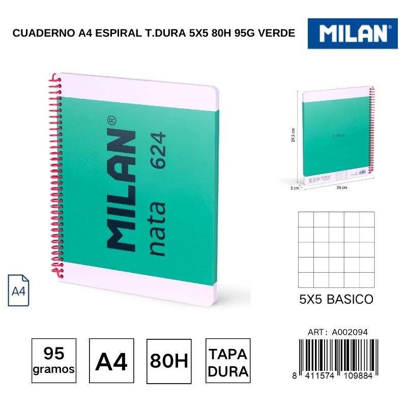 A4 spiral notebook 5x5 80s 95g green - School and office notebooks