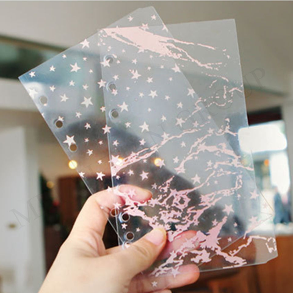 ตัวแบ่งดัชนีพีวีซีใสลายกุหลาบ A6แผ่นกระดาษฟอยล์สีทองแบบมีแถบแบ่งช่องสำหรับยึดแผ่นกระดาษด้านในที่กั้นเป็นแผ่น A5