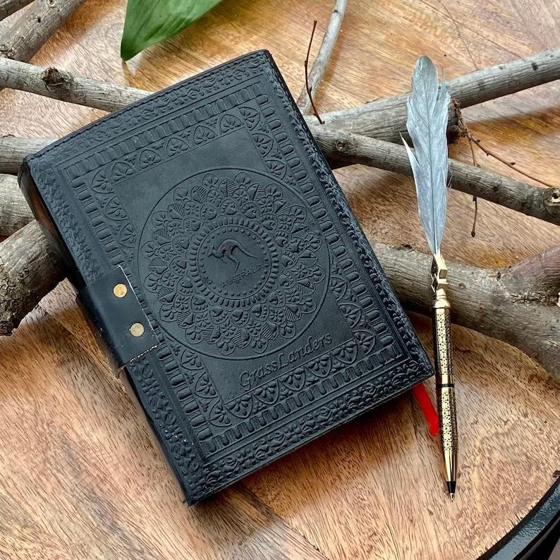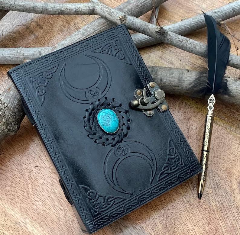 A5สีดำสามดวงจันทร์แบบเกลียวผูกสมุดบันทึกแบบเกลียวโลโก้ที่กำหนดเองอุปกรณ์เย็บผ้าด้ายเย็บอานของขวัญกล่องบรรจุภัณฑ์
