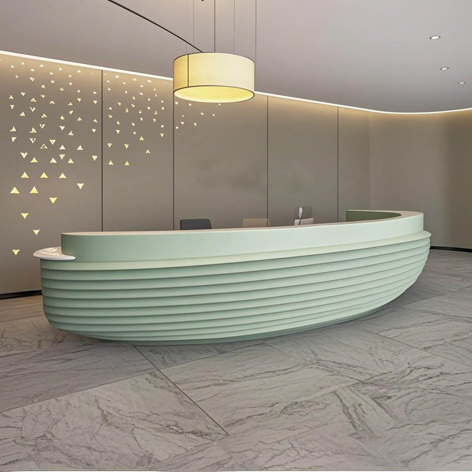 โต๊ะแผนกต้อนรับโค้งสีขาวทันสมัยพร้อมเคาน์เตอร์สำหรับโรงแรมสำนักงานร้านเสริมสวยสปา A5ออกแบบให้ทันสมัย