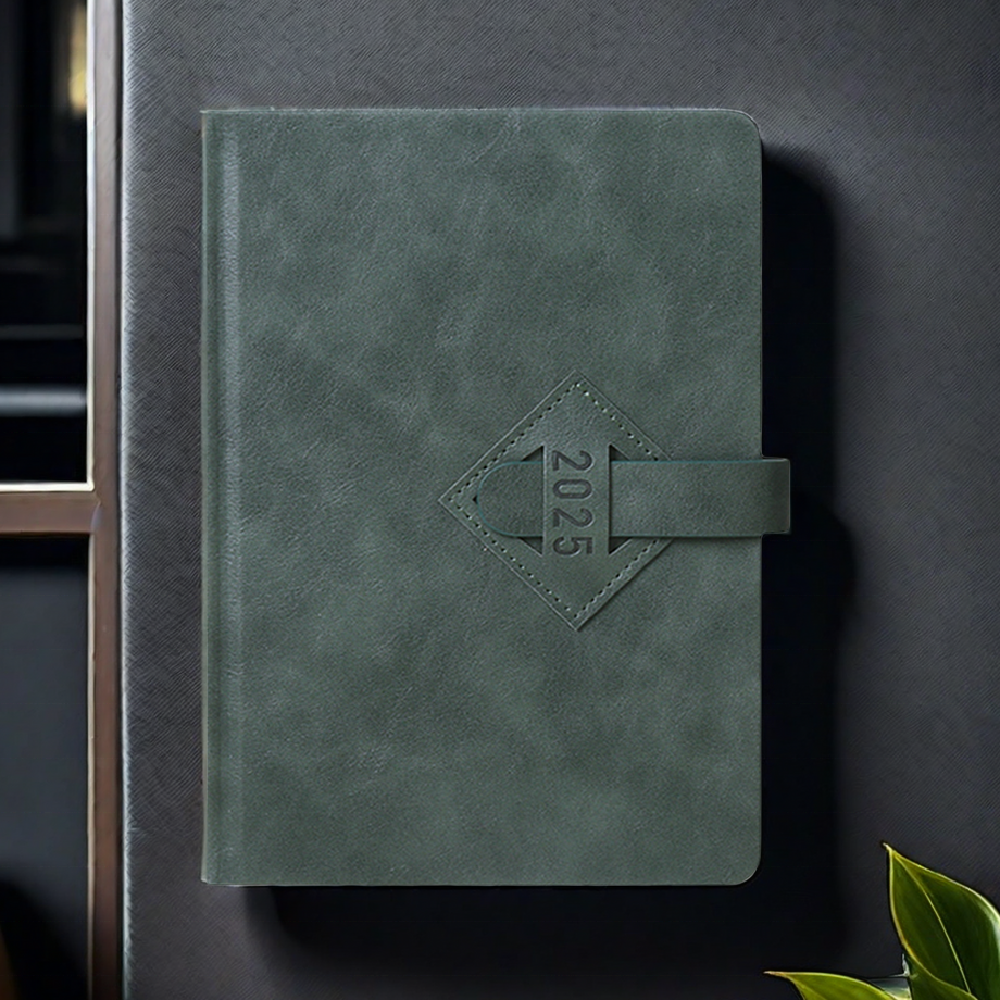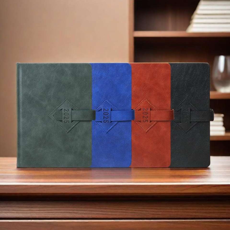 สมุดแพลนเนอร์สมุดแพลนเนอร์สมุดโน้ตอเนกประสงค์พร้อมสายรัด PU ดีไซน์ใหม่ A5