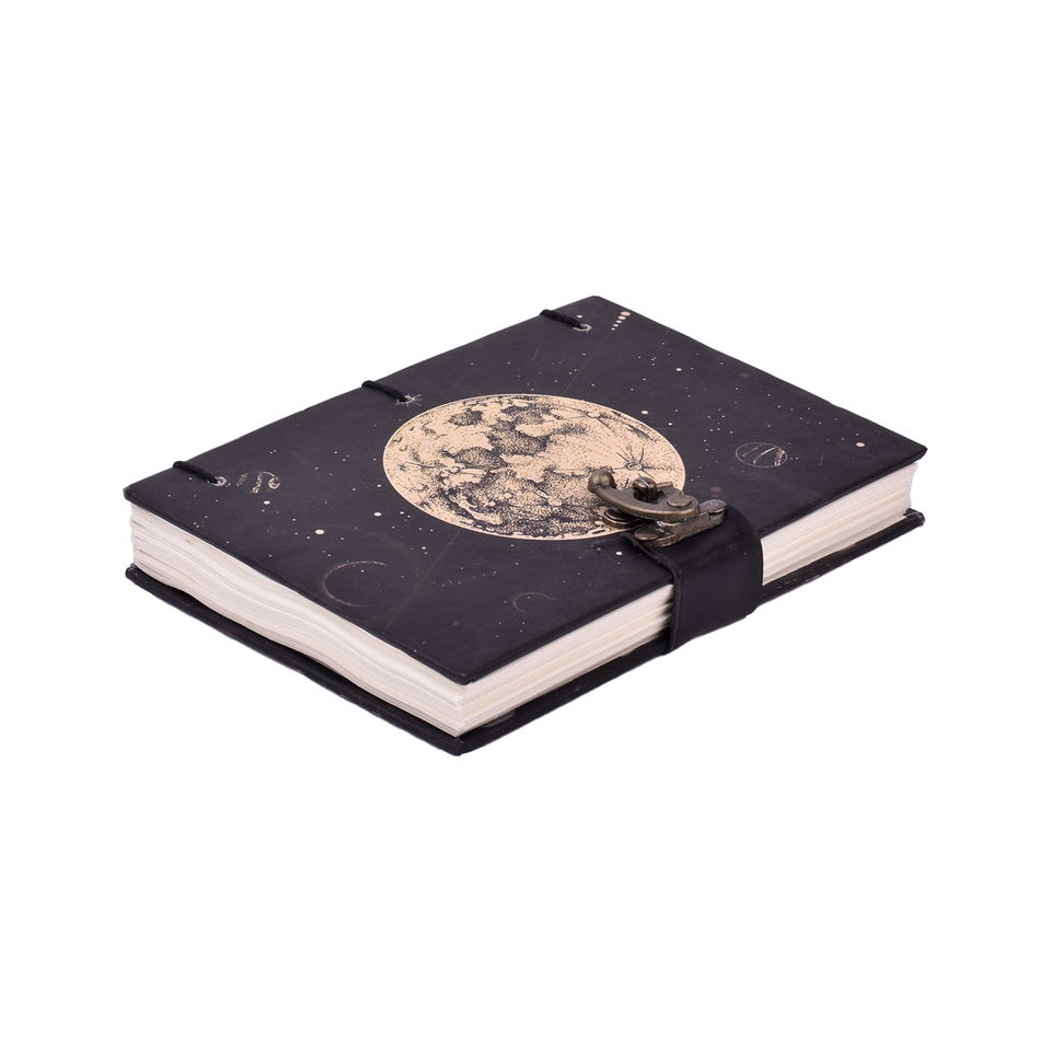 A5 Size Moon Space Design Handmade Paper Notebook Lock Diary | 200 Pages Double Side Eco Friendly Journal Aesthetic Night Theme