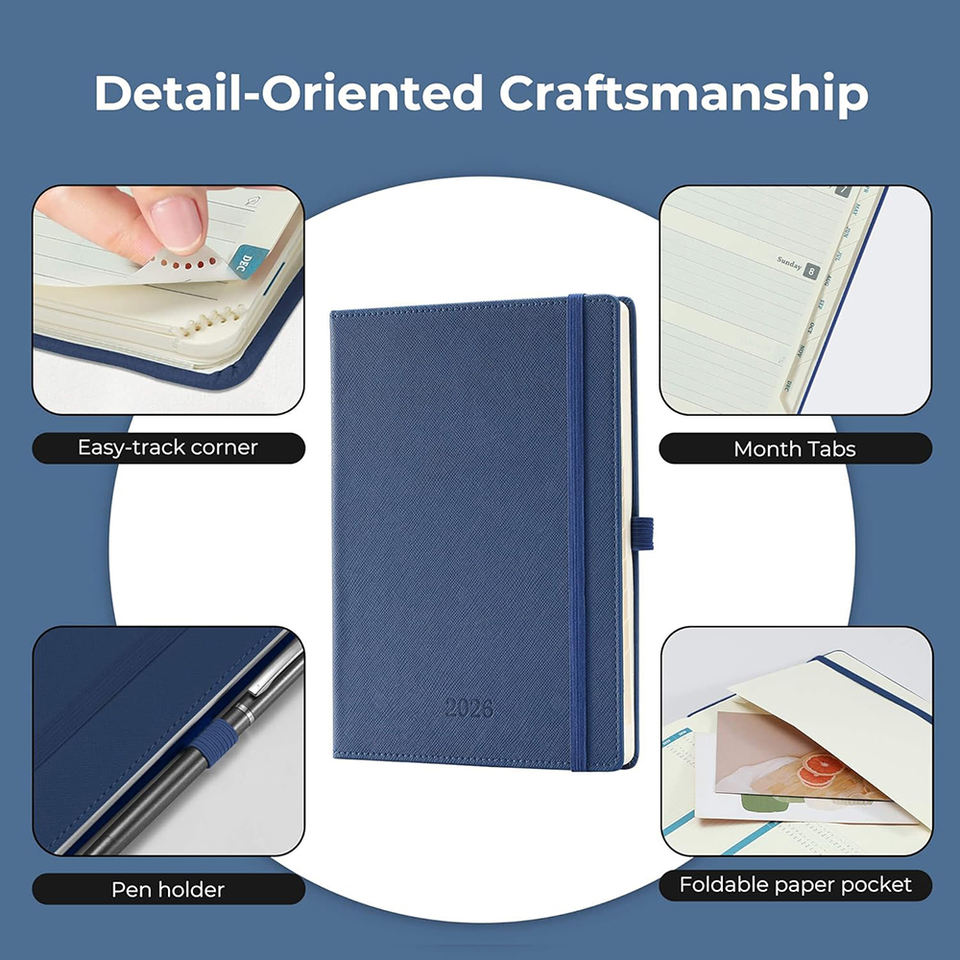 สมุดออร์แกไนเซอร์/แพลนเนอร์ปกหนังเย็บแบบสันห่วง A5 พร้อมช่องใส่ของแบบแบน เป็นมิตรกับสิ่งแวดล้อม พิมพ์ลาย ปรับแต่งโลโก้ด้วยฟอยล์สีทองได้