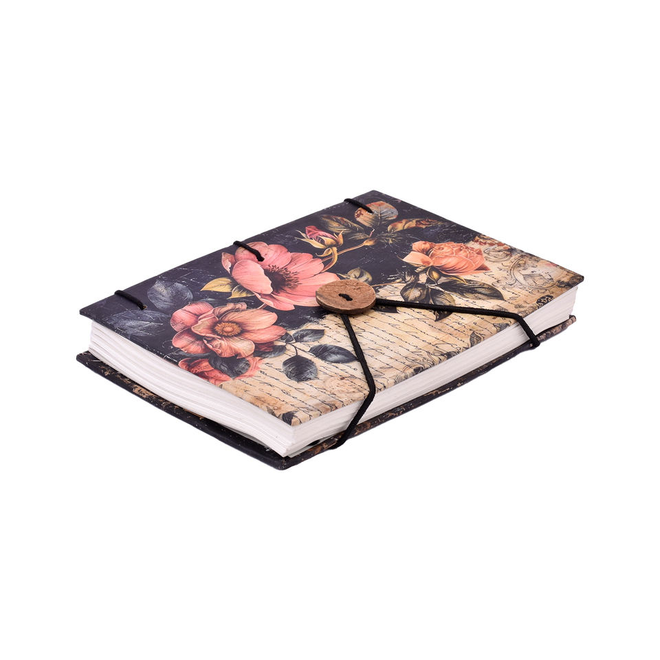 สมุดบันทึกกระดาษทำมือลายดอกไม้วินเทจ A5 100 หน้า | สมุดบันทึกเป็นมิตรกับสิ่งแวดล้อมพร้อมกระดุมปิด ทำด้วยมือแท้ 100 เปอร์เซ็นต์