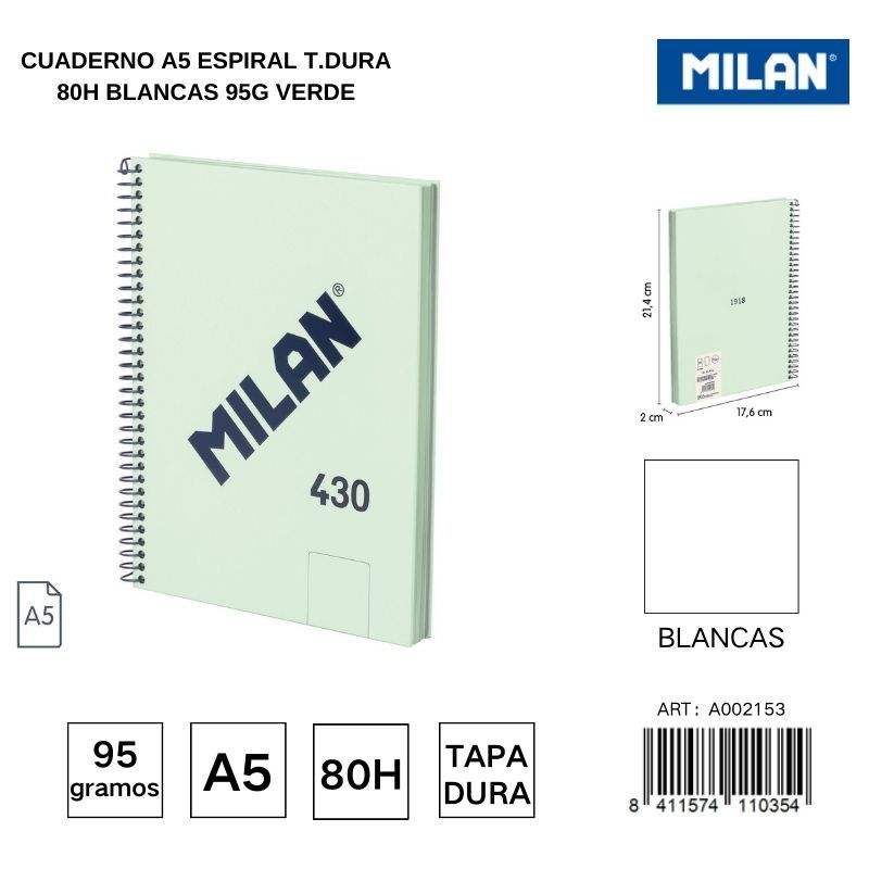 A5 spiral notebook, 80 pages, white, 95gsm, green - School and office notebooks