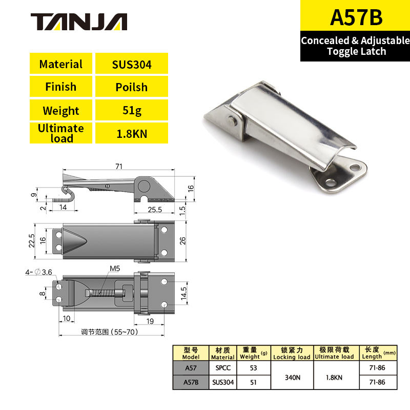 ตัวล็อคแบบปรับได้และซ่อนได้ ทำจากสแตนเลส A57 เกรด 304 สำหรับงานอุตสาหกรรม