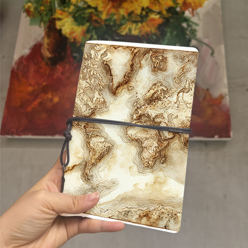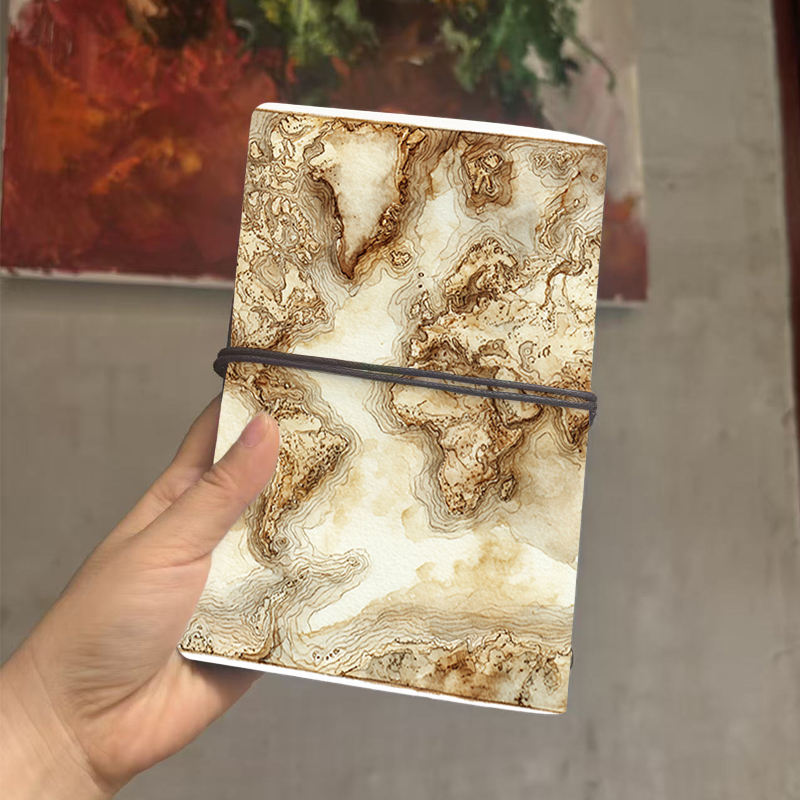 สมุดโน้ต A6ของขวัญคริสต์มาสสำหรับทีมกฎหมายหลังจากที่ชนะคดีด้วยภาพวาดแผนที่โลกสไตล์โบราณที่พิมพ์บนหน้าปก