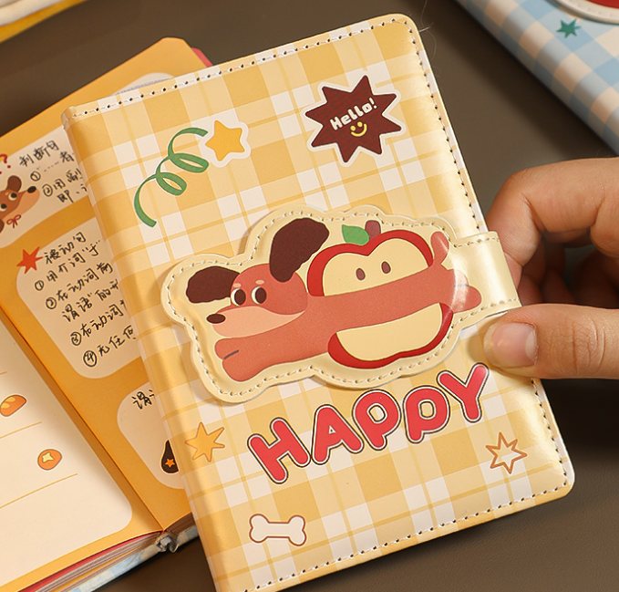 สมุดบันทึกการเรียน PU A6-ปกพิมพ์ลายสุนัขไส้กรอกน่ารักไดอารี่กระดาษหนาสำหรับนักเรียนชั้นประถม
