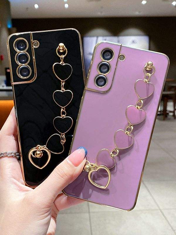 เคส A73 หรูหรา สายคล้องคอรูปหัวใจ พร้อมที่วางโทรศัพท์ ชุบเคลือบ สำหรับ Samsung Galaxy A51 A52 A50 A30 A70 A31 A71 A33 A53 A7 M33