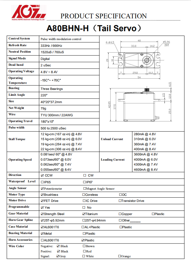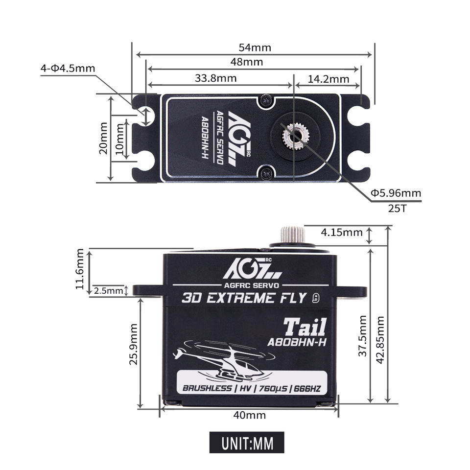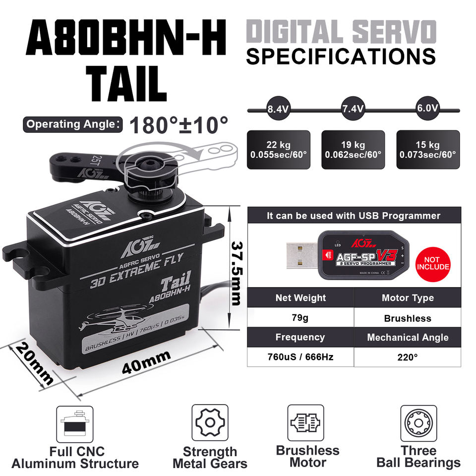 A80BHN-H 25T เฟืองโลหะมาตรฐานแบบสไปลน์ ตัวเรือนอะลูมิเนียม ดิจิตอลแบบไร้แปรงถ่าน
