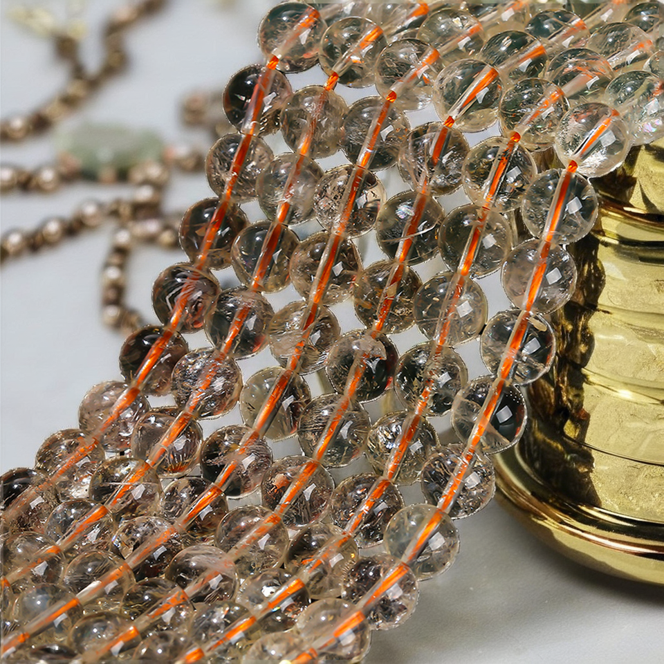 ลูกปัดคริสตัลซิทรินทรงกลมธรรมชาติ 100% ขนาด 6/8/10/12 มม. อัญมณีหลวม ได้รับการรับรองจาก CNAS สำหรับทำเครื่องประดับ หินกึ่งมีค่า